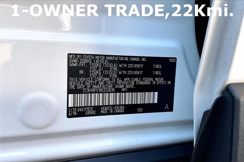 VIN: 2T3H1RFV1RC253636 | Stock #: 253636A | Mileage: 22,868